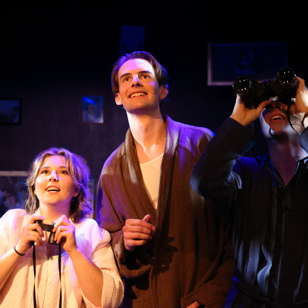 I’m always excited to see a production of Merrily We Roll Along by Stephen Sondheim and George Furth because it’s such a clever musical. With time moving backwards, you get to see the characters’ origin stories play out in unexpected ways. It’s a big puzzle, and an immense challenge for the actors who have to age backwards and present their arcs in reverse. But there’s also a huge payoff when done well, and all the lead actors in UNSW Musical Theatre Society’s production were up for this challenge.